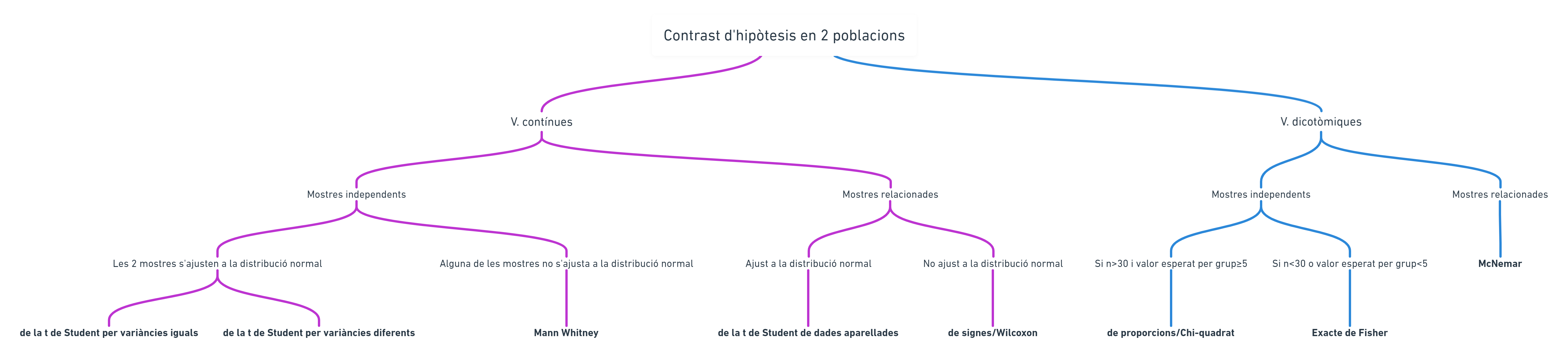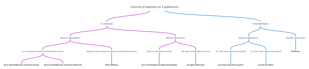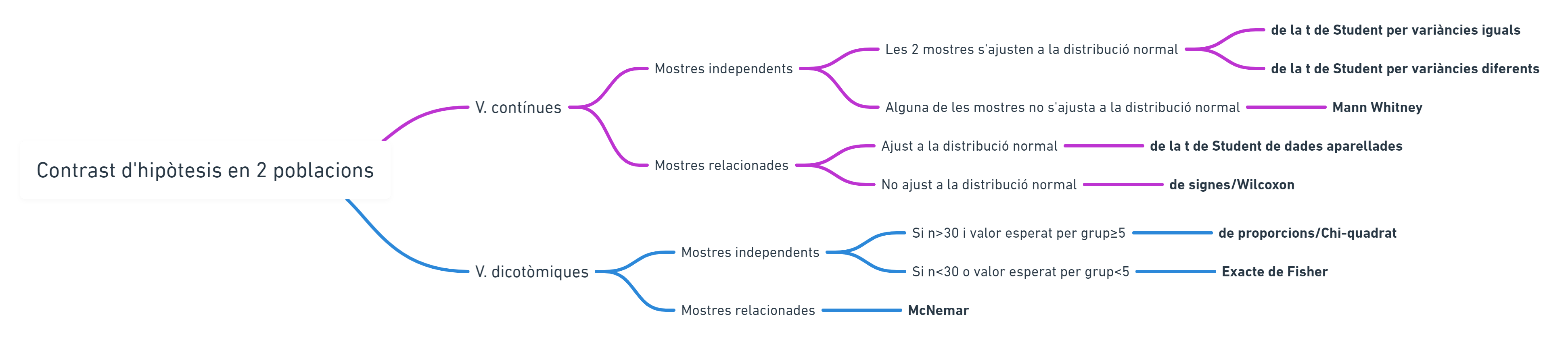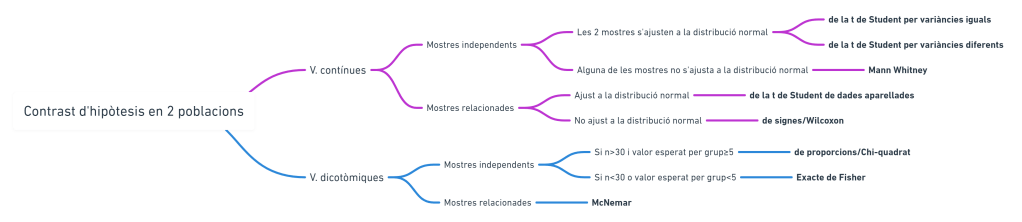 4. Voy a trazar un mapa de las técnicas más usuales de comparación de dos poblaciones y lo voy a hacer estructurado a modo de protocolo de actuación, de decisión.