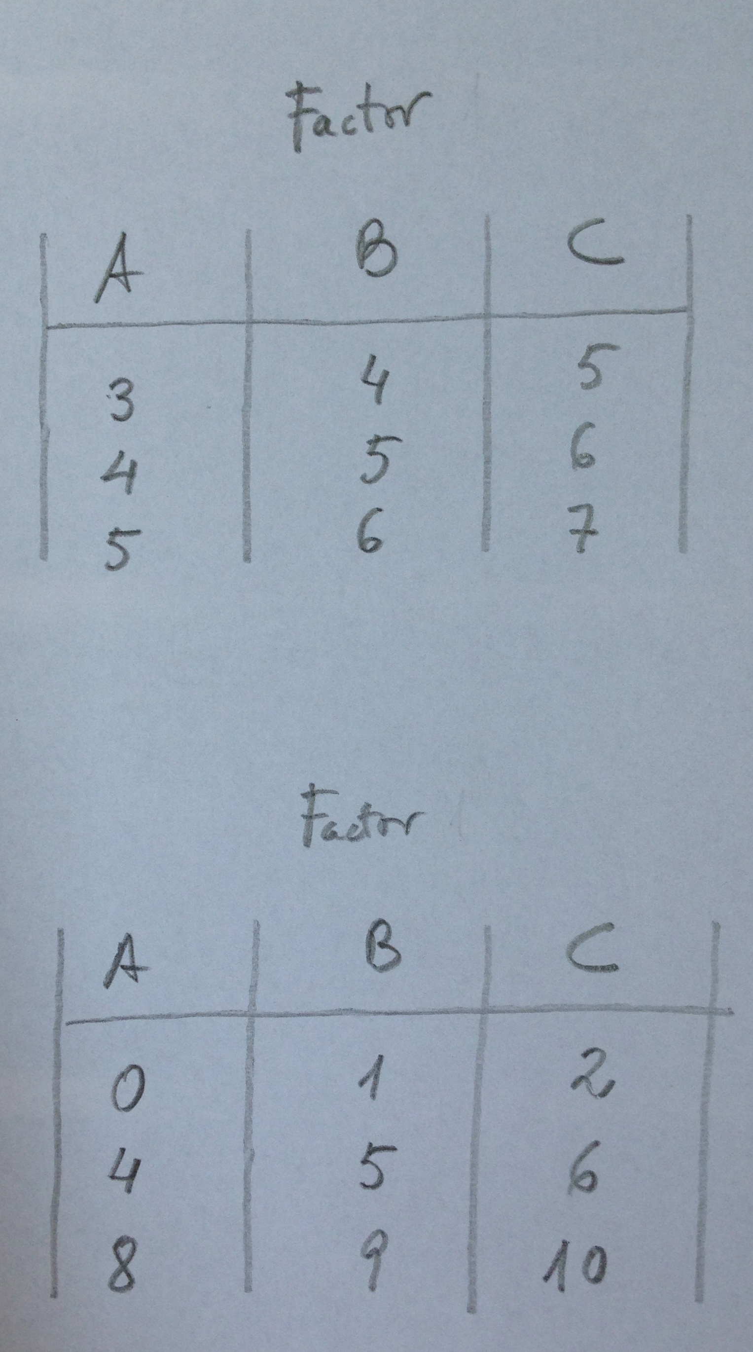 59. En todos estos ejemplos hemos visto alguna diferencia, sea de un factor, del otro, o de ambos, pero no nos olvidemos que podríamos encontrarnos también con datos como los siguientes: