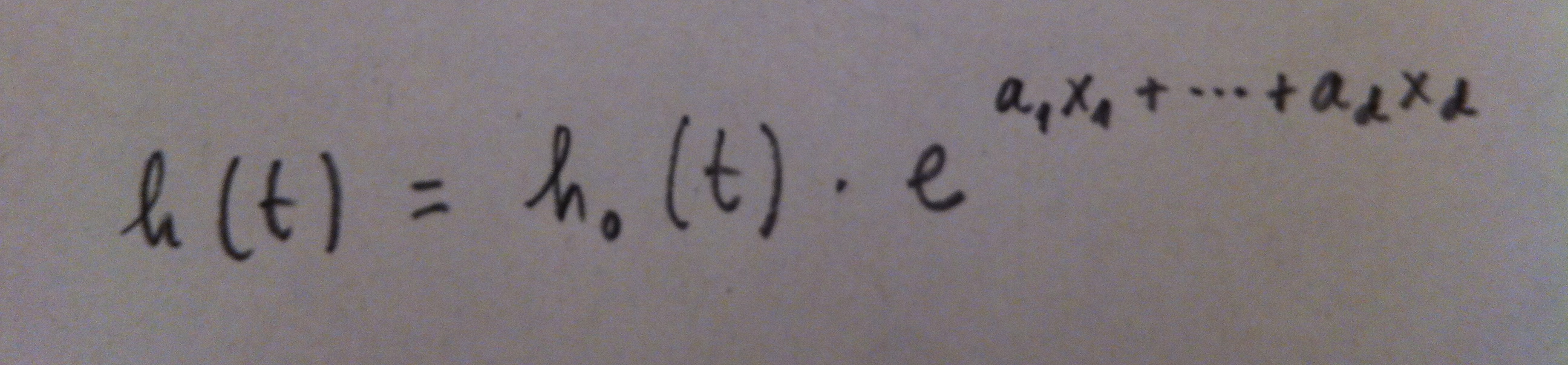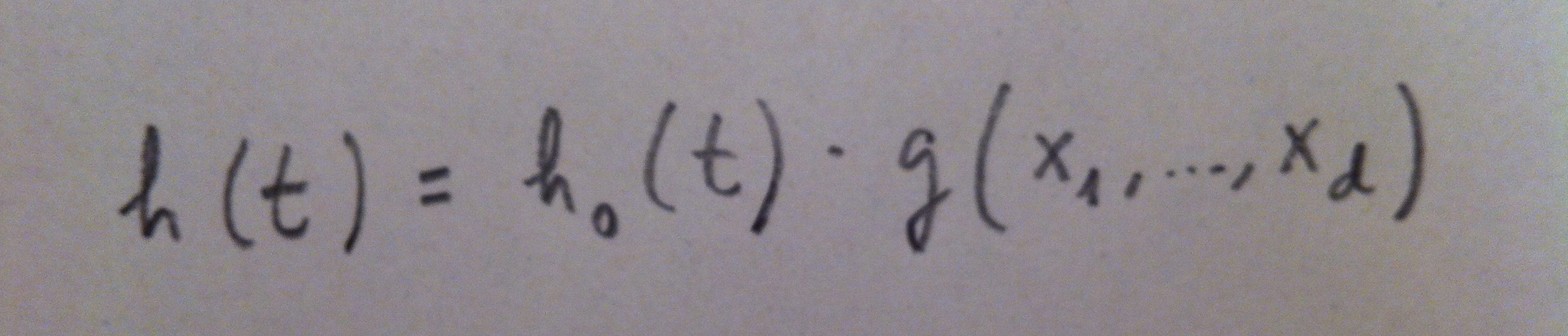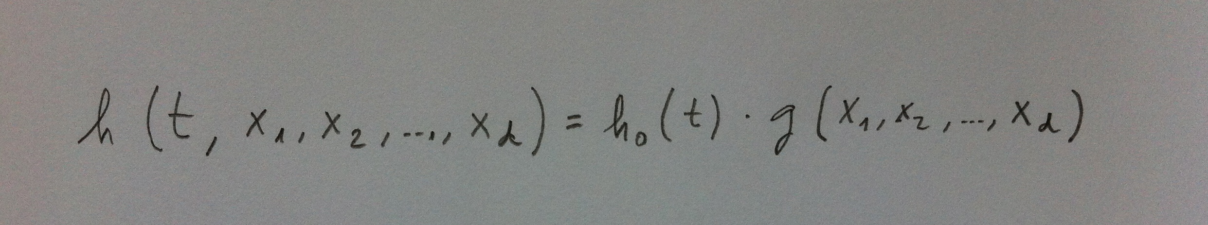 7. Aunque ésta es la forma en la que suele escribirse el modelo de la Regresión de Cox, desde un punto de vista matemático lo correcto es escribirlo como una función de varias variables y, por lo tanto, quedarían, tanto la función general como la más concreta, en realidad, así: