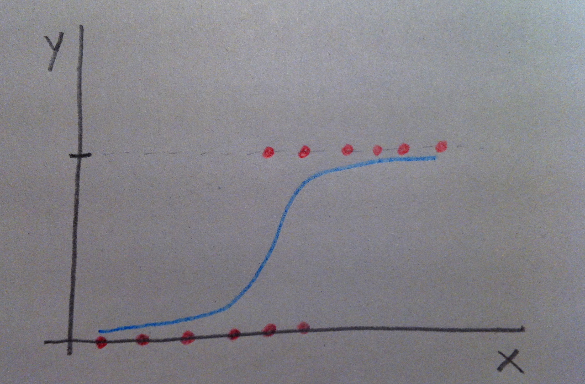 13. Es importante comparar la Regresión de Cox con la Regresión logística. En la Regresión logística la variable dependiente dicotómica se ponía en relación con una variable independiente sin contemplar el tiempo o contemplándolo sólo de forma estática, viendo en un punto fijo del tiempo si el suceso estudiado ha acontecido o no, pero no teniendo en consideración en qué momento ha sucedido. Se llegaba a una situación como la siguiente (Ver el tema dedicado a la Regresión logística):