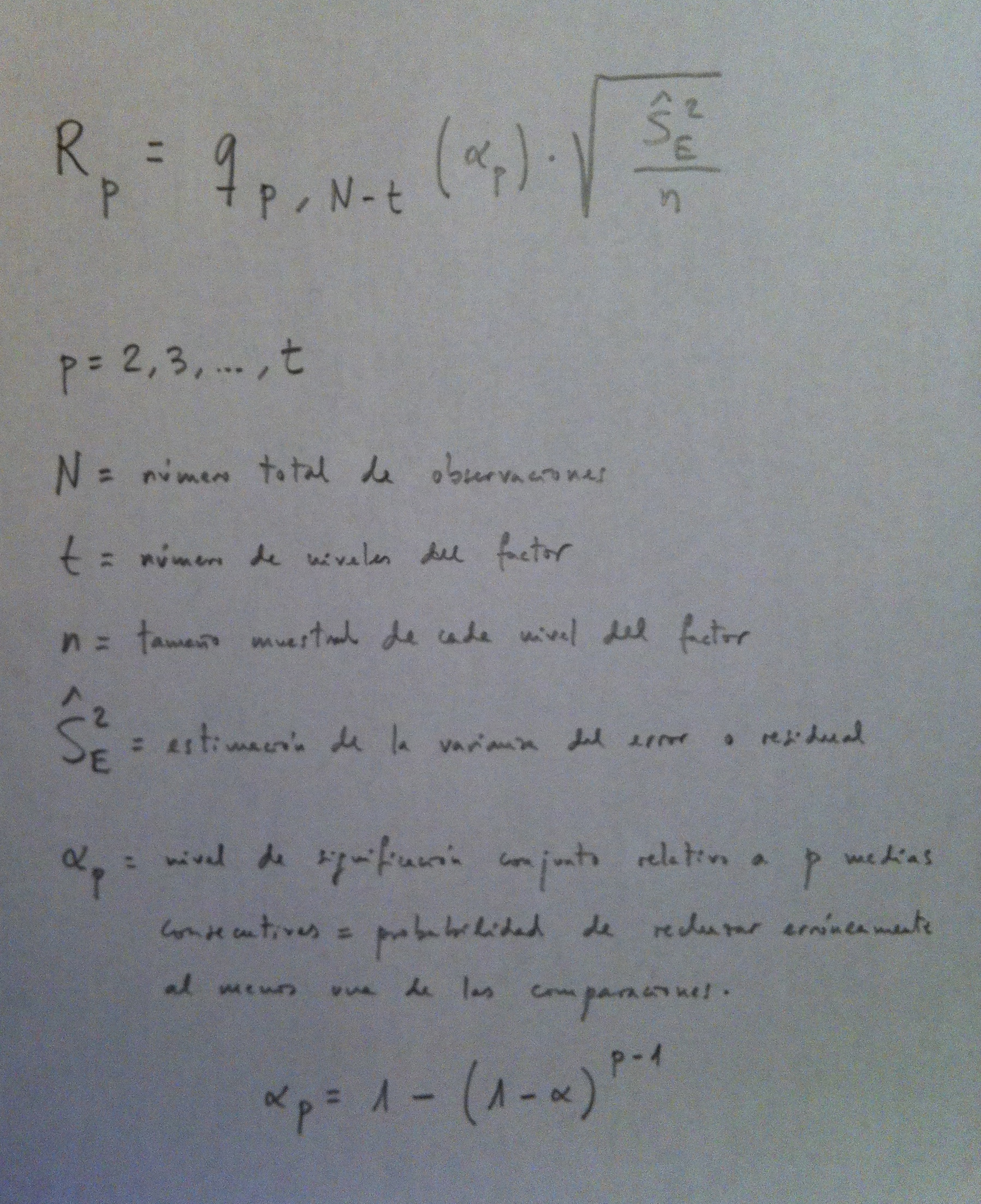 Para saber el número de medias implicadas en la comparación se ordenan las medias muestrales de menor a mayor y así al hacer una comparación entre dos medias sabremos además de las dos medias comparadas cuantas medias quedan dentro. Este número de medias implicadas en cualquier comparación de medias es el parámetro p de este umbral.
