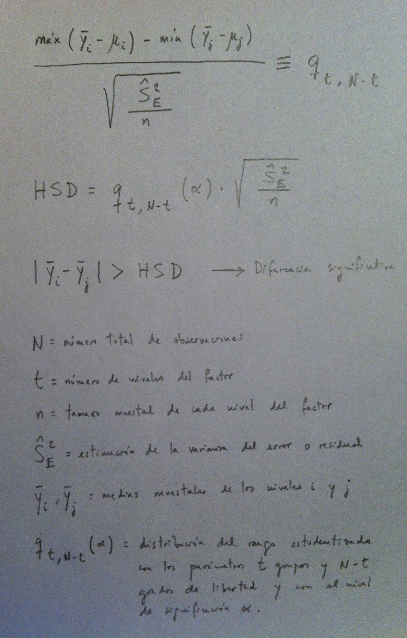 Se basa en la distribución del rango estudentizado que es la distribución que sigue la diferencia del máximo y del mínimo de las diferencias entre la media muestral y la media poblacional de t variables normales N(0, 1) independientes e idénticamente distribuidas.