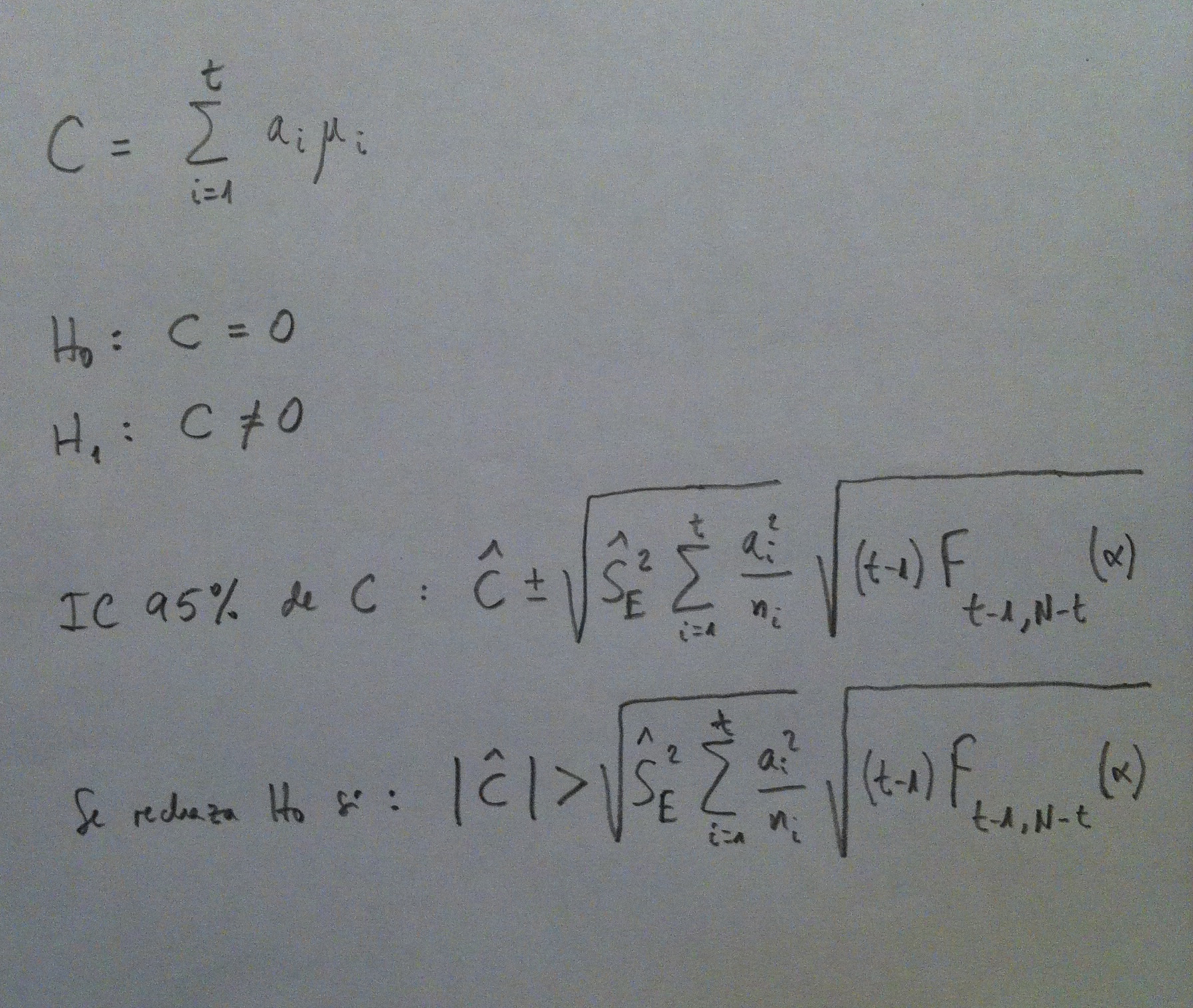 El Test de Scheffé es un test de comparaciones múltiples. Permite comparar, como los demás contrastes de este tipo, las medias de los t niveles de un factor después de haber rechazado la Hipótesis nula de igualdad de medias mediante la técnica ANOVA.