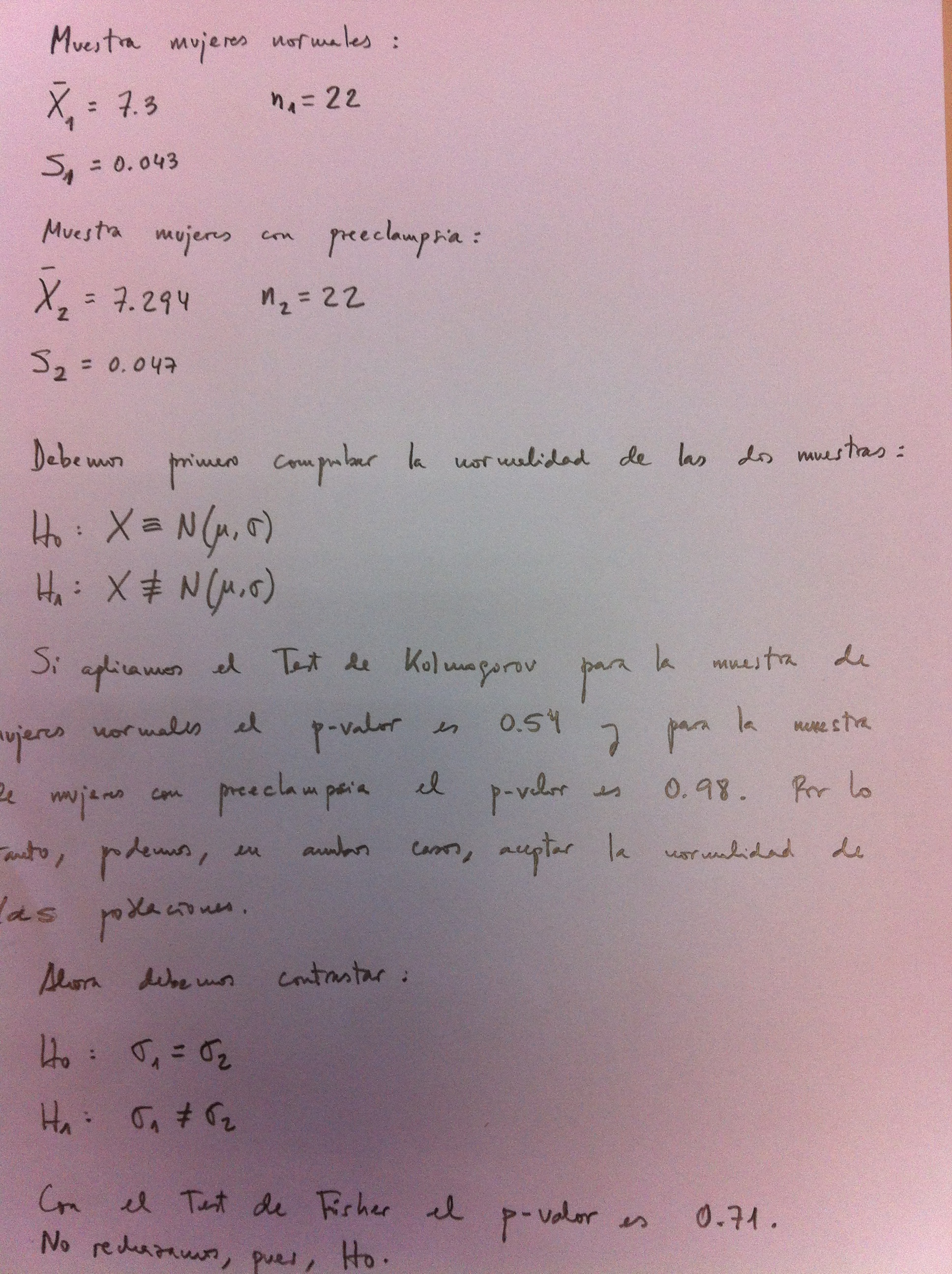 Se ha medido el pH del cordón umbilical de 22 recién nacidos de mujeres normales y de mujeres con preeclampsia, obteniéndose los siguientes valores: