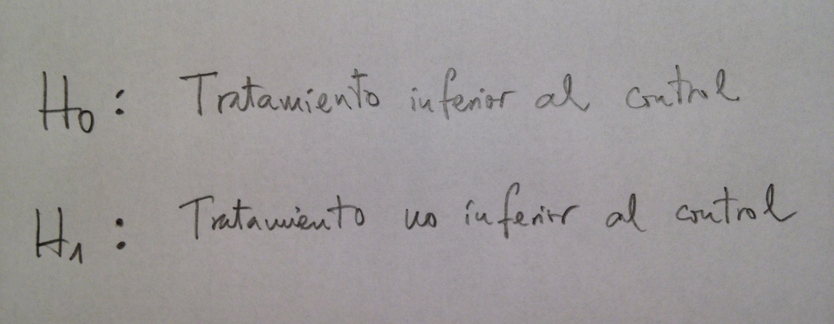 En la Hipótesis nula tendremos la inferioridad del tratamiento respecto al control y en la Hipótesis alternativa tendremos la no inferioridad que queremos demostrar.