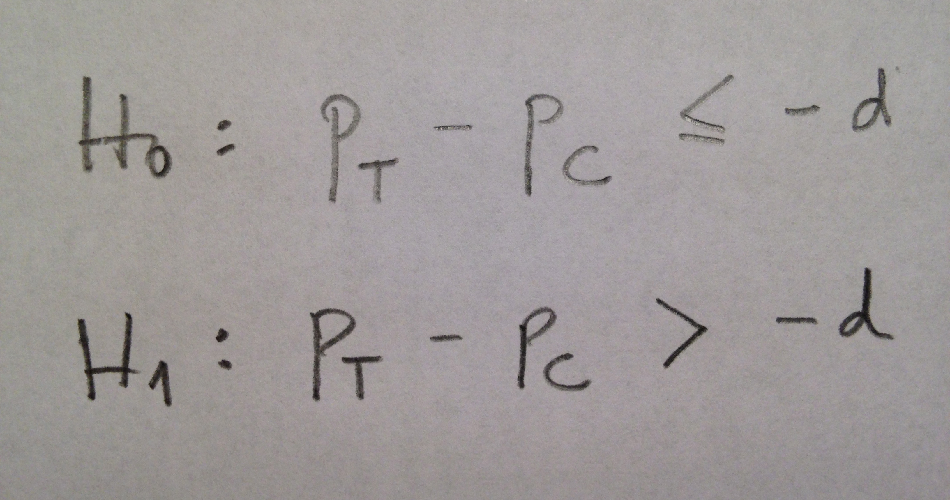 En realidad, para que se conviertan en auténticos test de no inferioridad hace falta fijar un valor, un umbral para dejarle un espacio a la Hipótesis alternativa.
