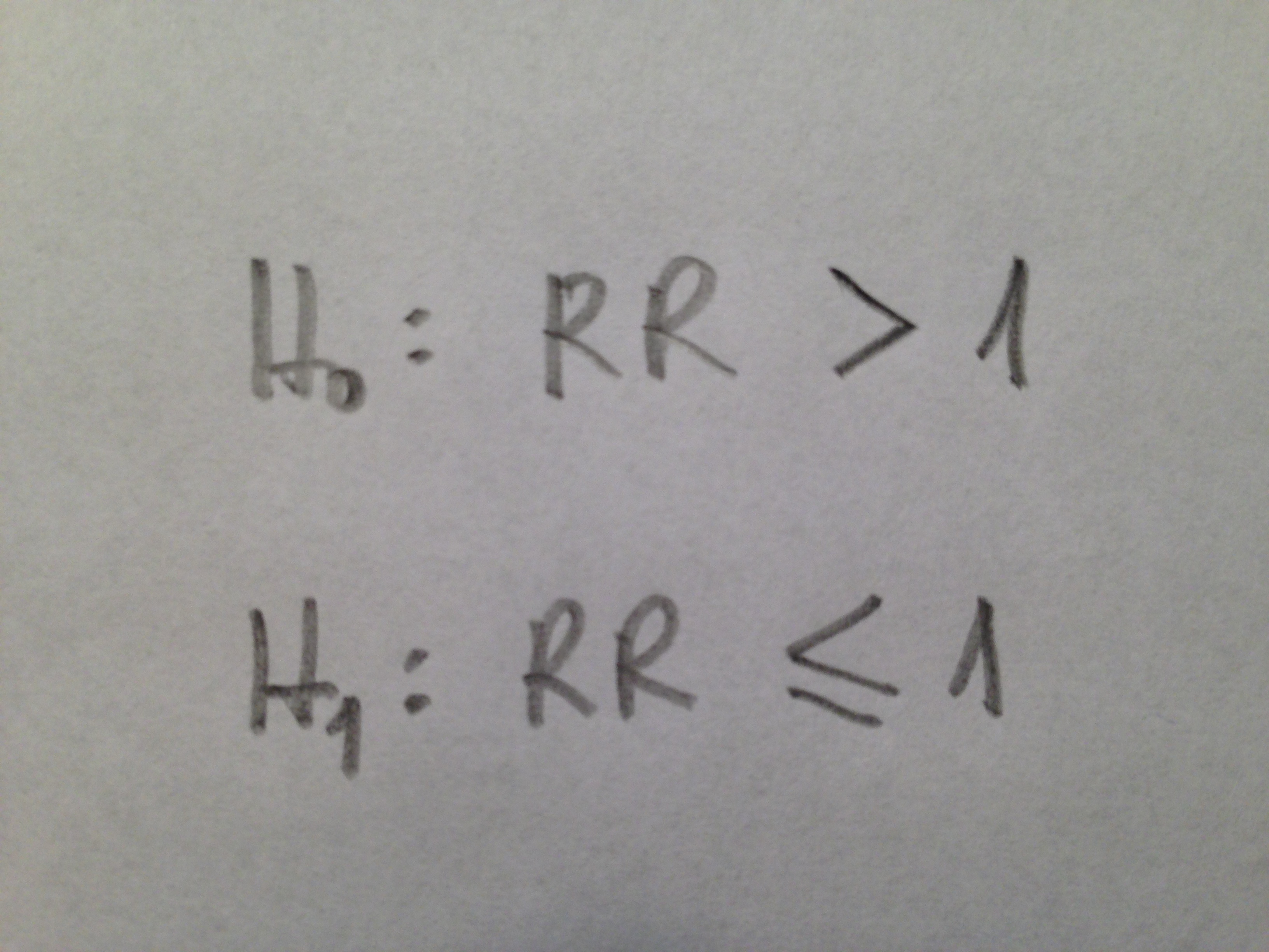 Un caso particular de este último planteamiento sería si la variable que se analiza es un Riesgo Relativo (RR). Si lo que comparamos es el RR de T respecto a C el Test de no inferioridad sería entonces: