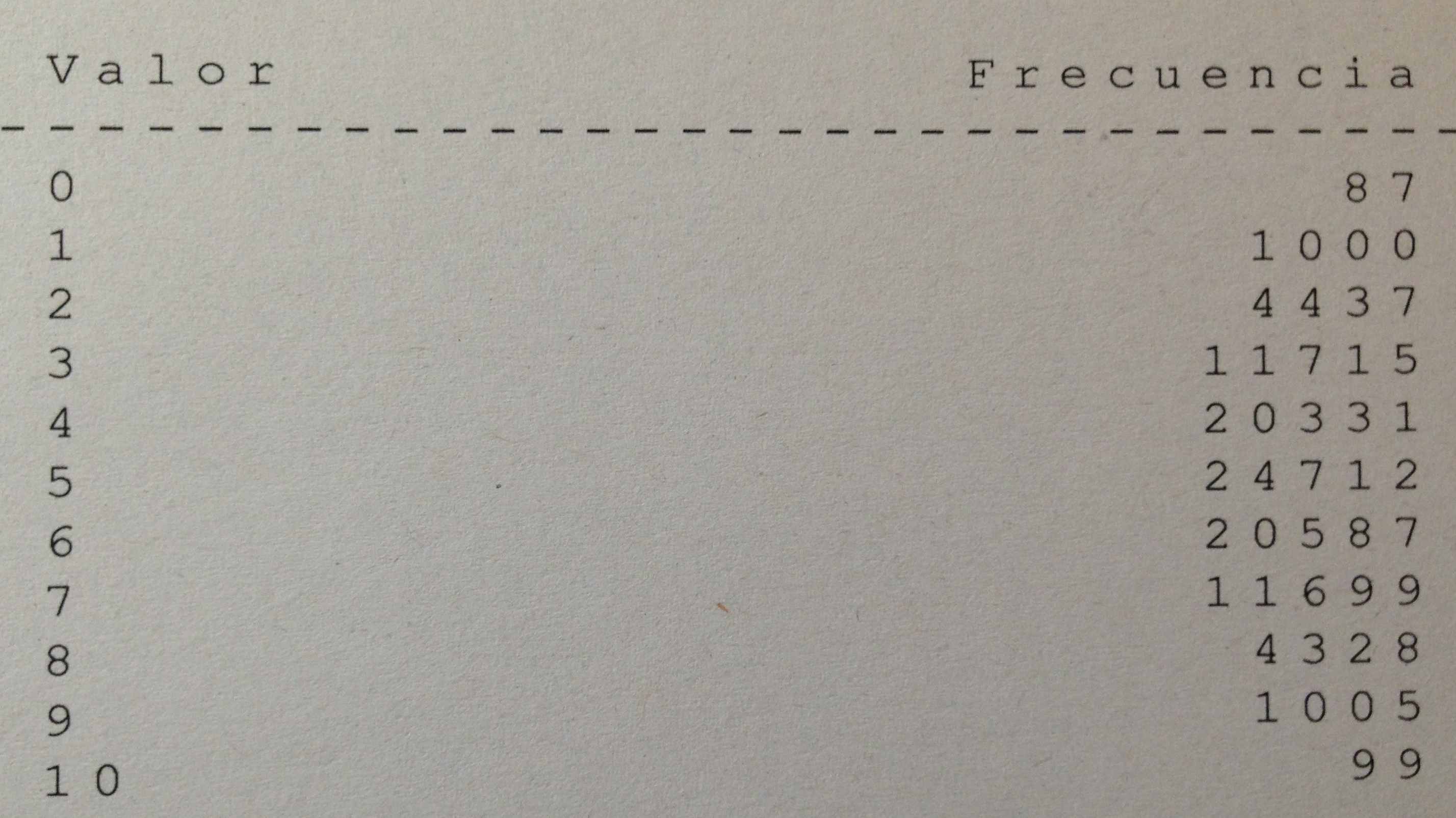 Supongamos que cogiéramos una moneda sacada de fábrica, una moneda que seguro que es equilibrada, una moneda que se ajusta perfectamente a lo que dice la Hipótesis nula. Y que hiciéramos 100000 experimentos de lanzar esa moneda 10 veces. O sea, que hiciéramos un millón de lanzamientos independientes agrupándolos de 10 en 10 para que queden como 100000 experimentos de lanzar 10 veces esa moneda equilibrada. En cada uno de esos 100000 experimentos de lanzar la moneda 10 veces anotaríamos el número de caras que obtuviéramos.