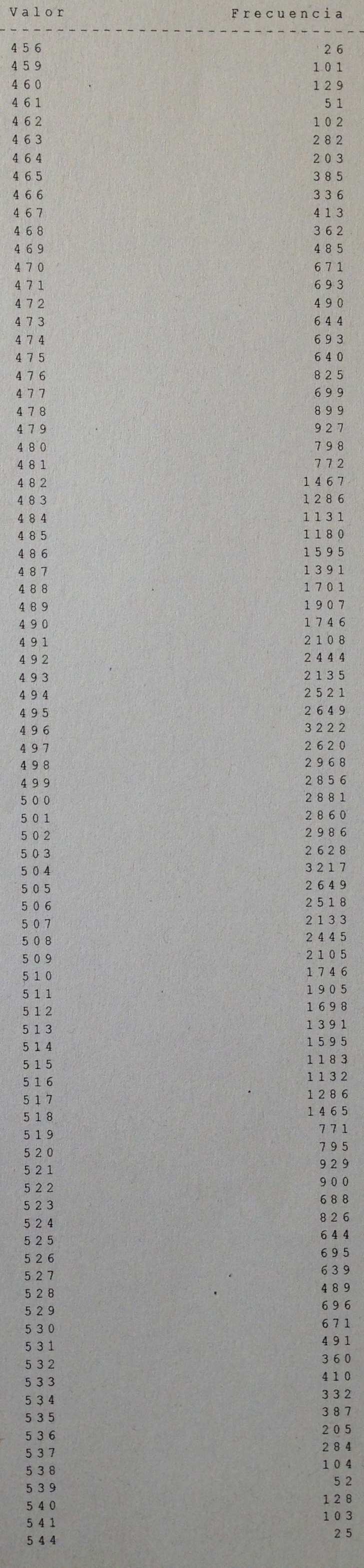Pero, aún más largo, supongamos que cogiéramos, también, esa misma moneda y hiciéramos 100000 experimentos pero ahora de lanzar esa moneda 1000 veces en cada experimento. O sea, que hiciéramos cien millones de lanzamientos independientes agrupándolos de 1000 en 1000 para que quedaran como 100000 experimentos de lanzar 1000 veces esa moneda equilibrada. En cada uno de esos 100000 experimentos de lanzar la moneda 1000 veces anotaríamos, de nuevo, el número de caras que obtuviéramos.
