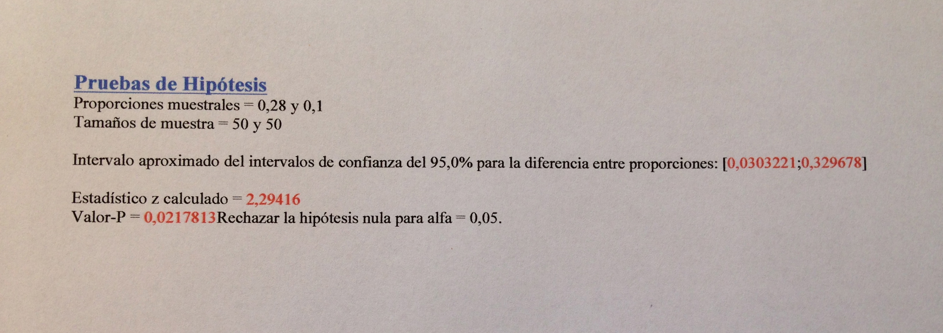 Pero observemos que si aplicáramos mal el test, si aplicáramos incorrectamente un Test de proporciones el resultado sería esto otro: