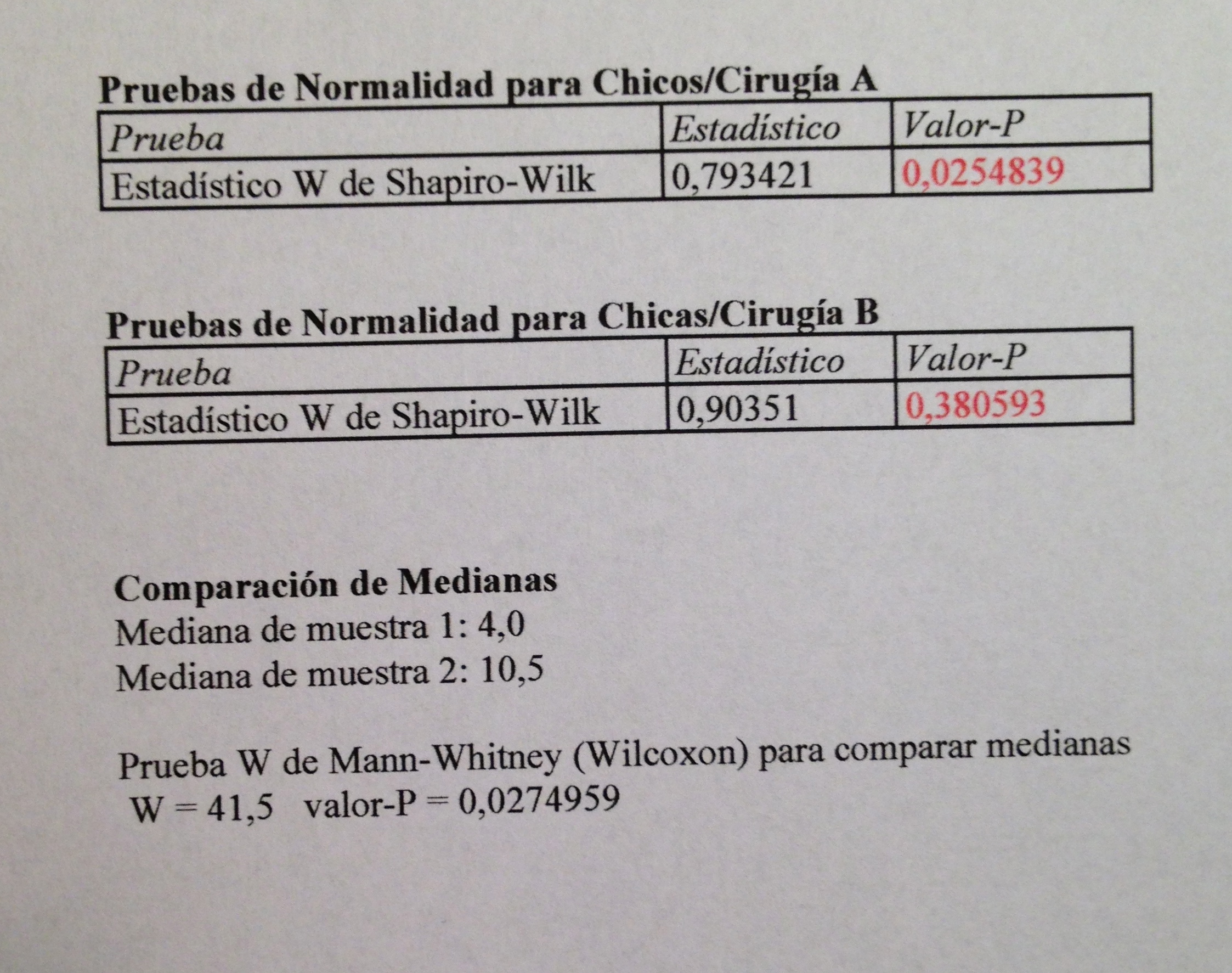 6. Variables continuas, muestras independientes. Hace falta comprobar si hay normalidad y si alguna de las dos muestras no se ajusta a la distribución normal (que es lo que sucede en este caso) pasamos ya directamente a aplicar el Test de Mann-Withney. Todos estos pasos se exponen a continuación: