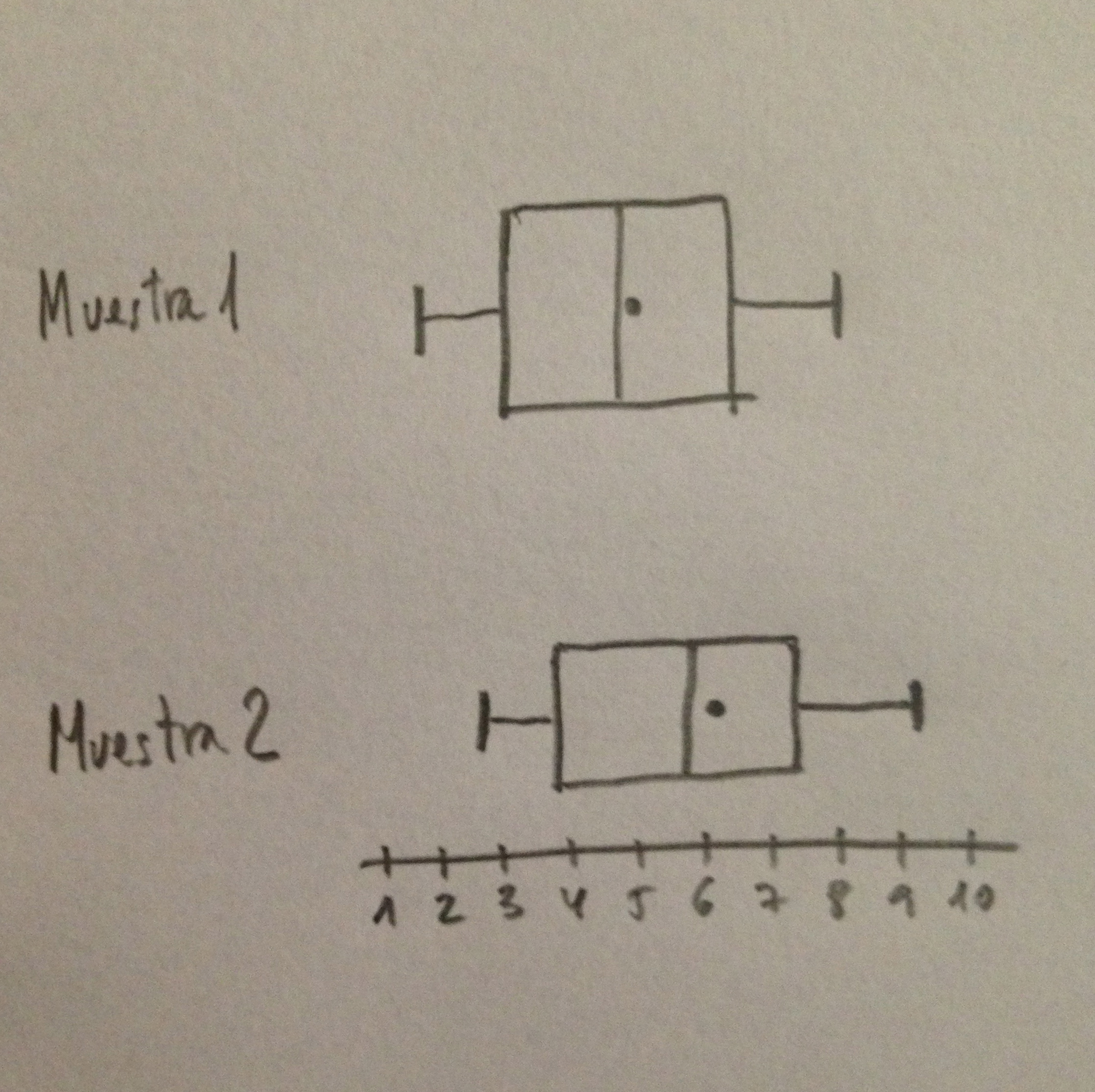 9. En una comparación de dos poblaciones tenemos dos muestras (la Muestra 1 y la Muestra 2), una de cada población, con los siguientes Box-Plots: