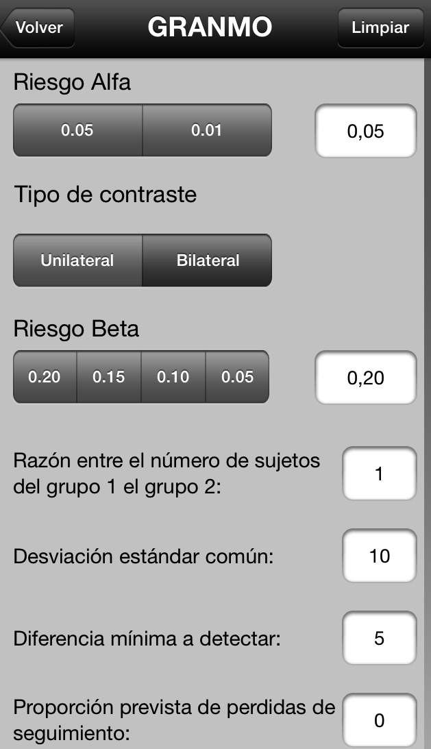 parámetros (Uso ahora la opción del GRANMO como aplicación, pero es lo mismo que se puede conseguir en la página web):