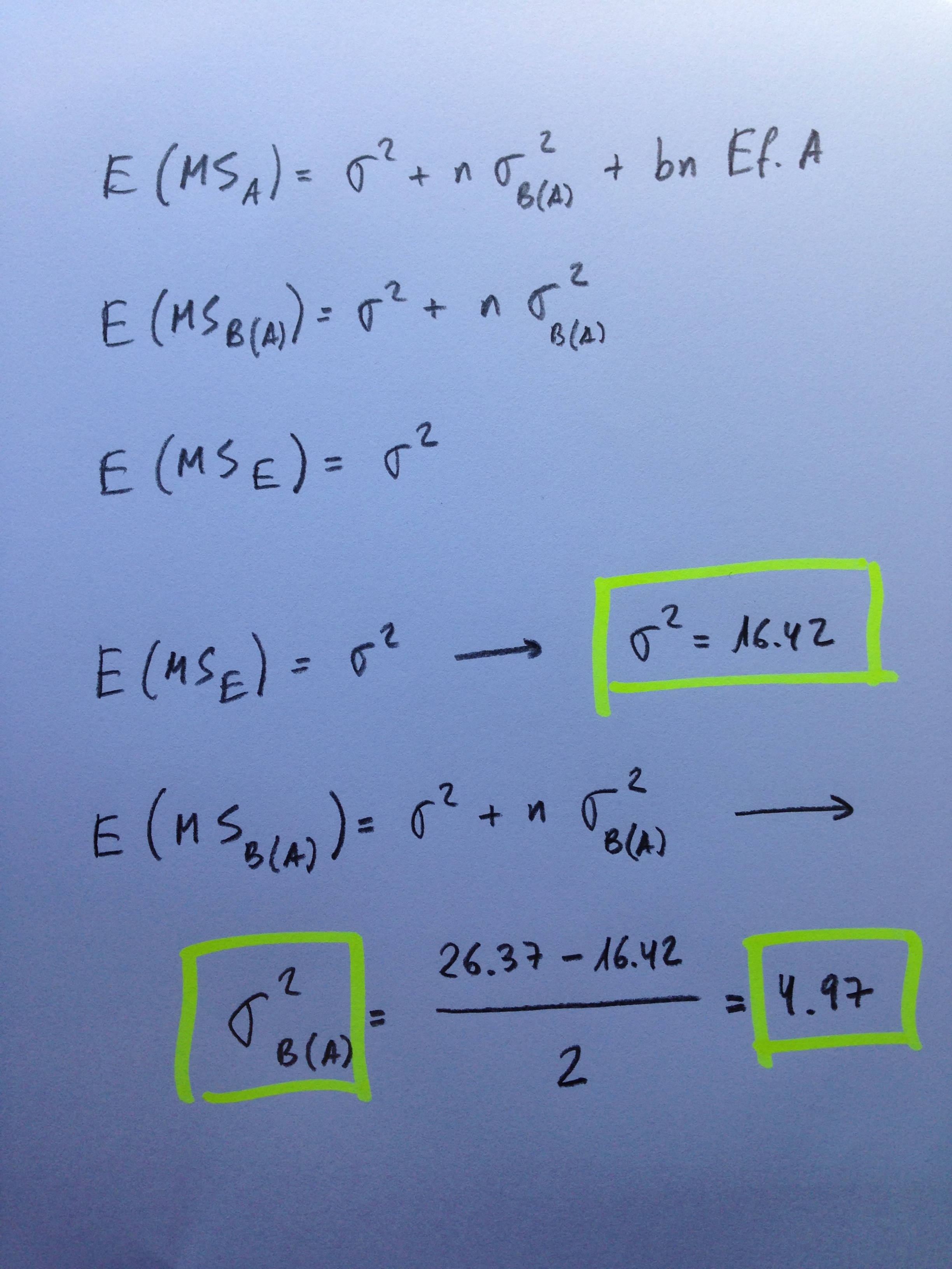Se trata de un ANOVA de dos factores. Uno fijo a dos niveles (Esfuerzo No y SI) y otro aleatorio que es la persona. Observemos también que se trata de factores anidados. El factor Persona está anidado dentro del factor Esfuerzo. El modelo es, pues, un ANOVA de factores anidados a efectos mixtos.