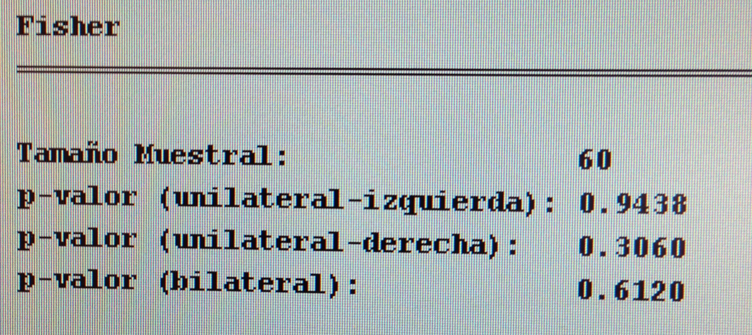 La salida de ordenador del Test exacto de Fisher es la siguiente: