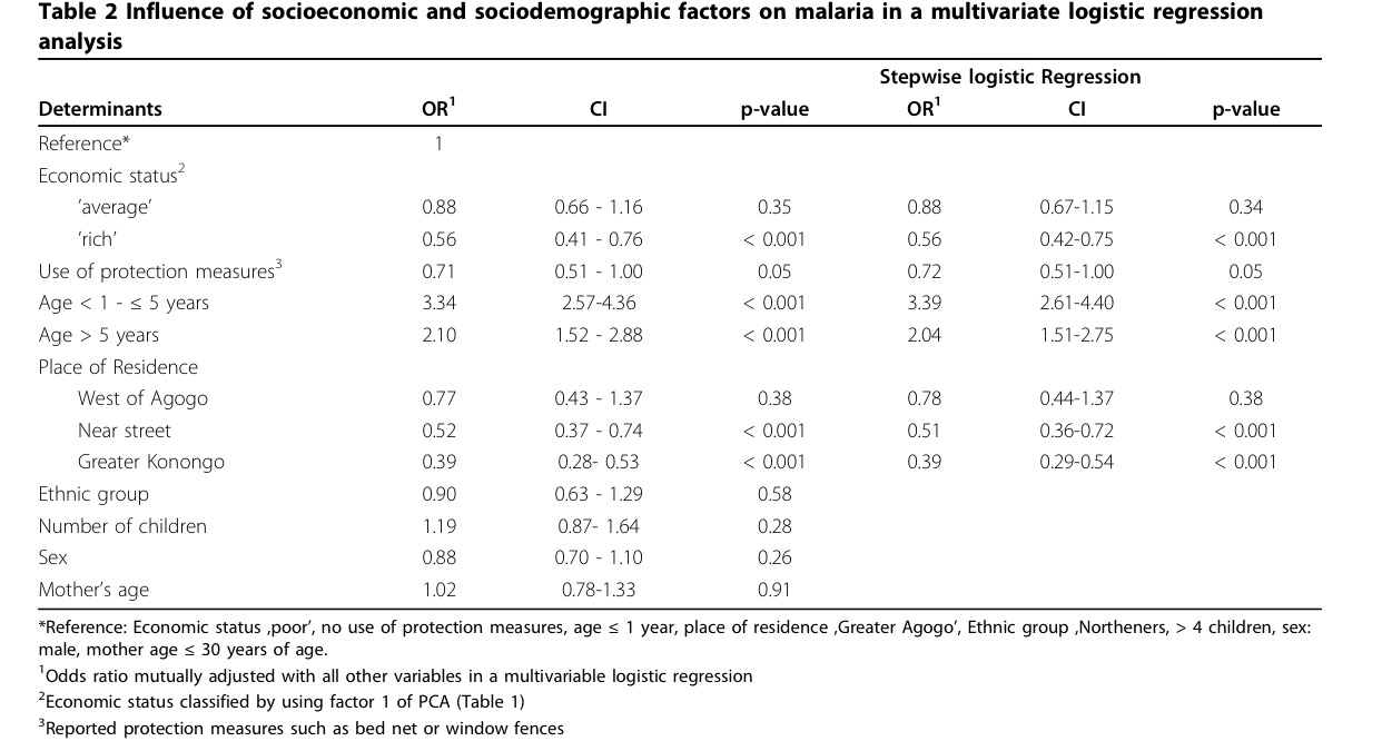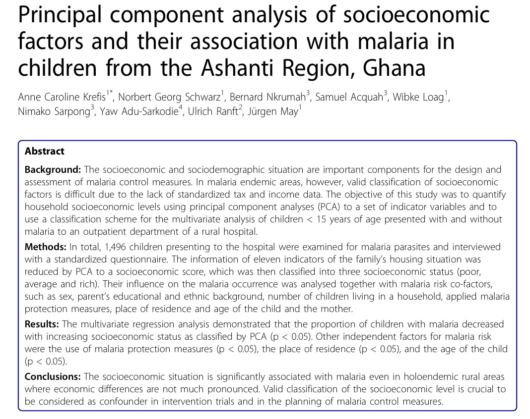 Es interesante ver ese uso. Están haciendo una Regresión logística relacionando esa primera componente principal con el tener o no malaria y obtienen esas Odds ratio.