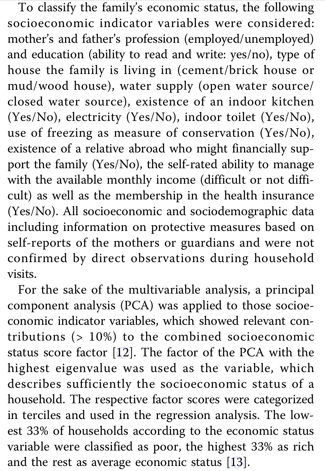Observemos, a través de la redacción de los métodos, cuáles han sido las variables utilizadas en el análisis, en este estudio. Como podemos ver variables socioeconómicas, como nos indica el título del artículo:
