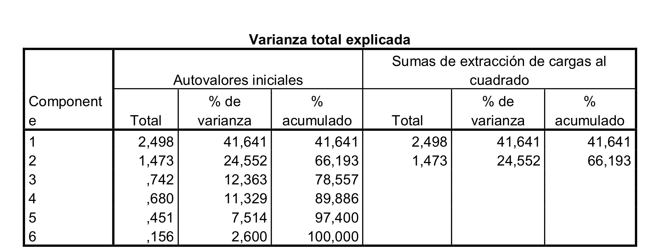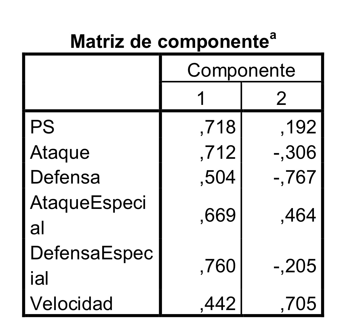 Un Análisis de componentes principales de estos datos nos proporciona la siguiente tabla de cantidad de información de cada componente: