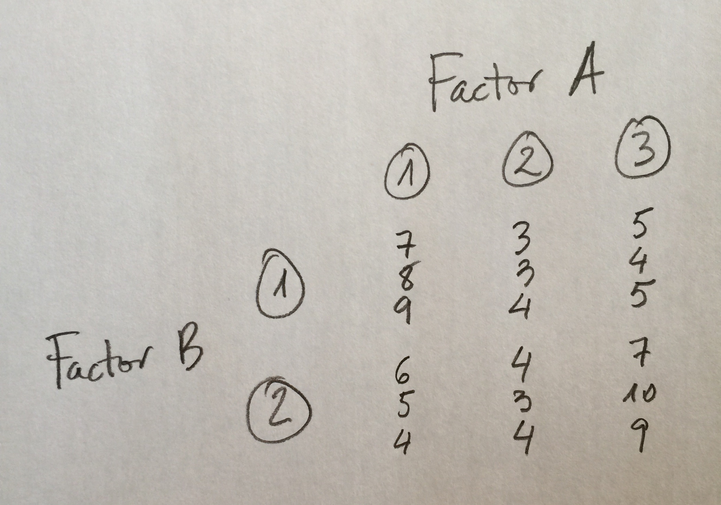 a. El p-valor del Factor A en un ANOVA de dos factores será menor de 0.05, el del Factor B será mayor que 0.05 y el p-valor de la interacción será menor que 0.05.