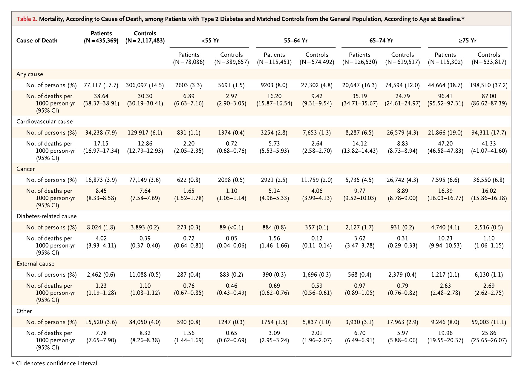 En la siguiente tabla podemos ver la distribución de pacientes y de controles según edad y causas de muerte: