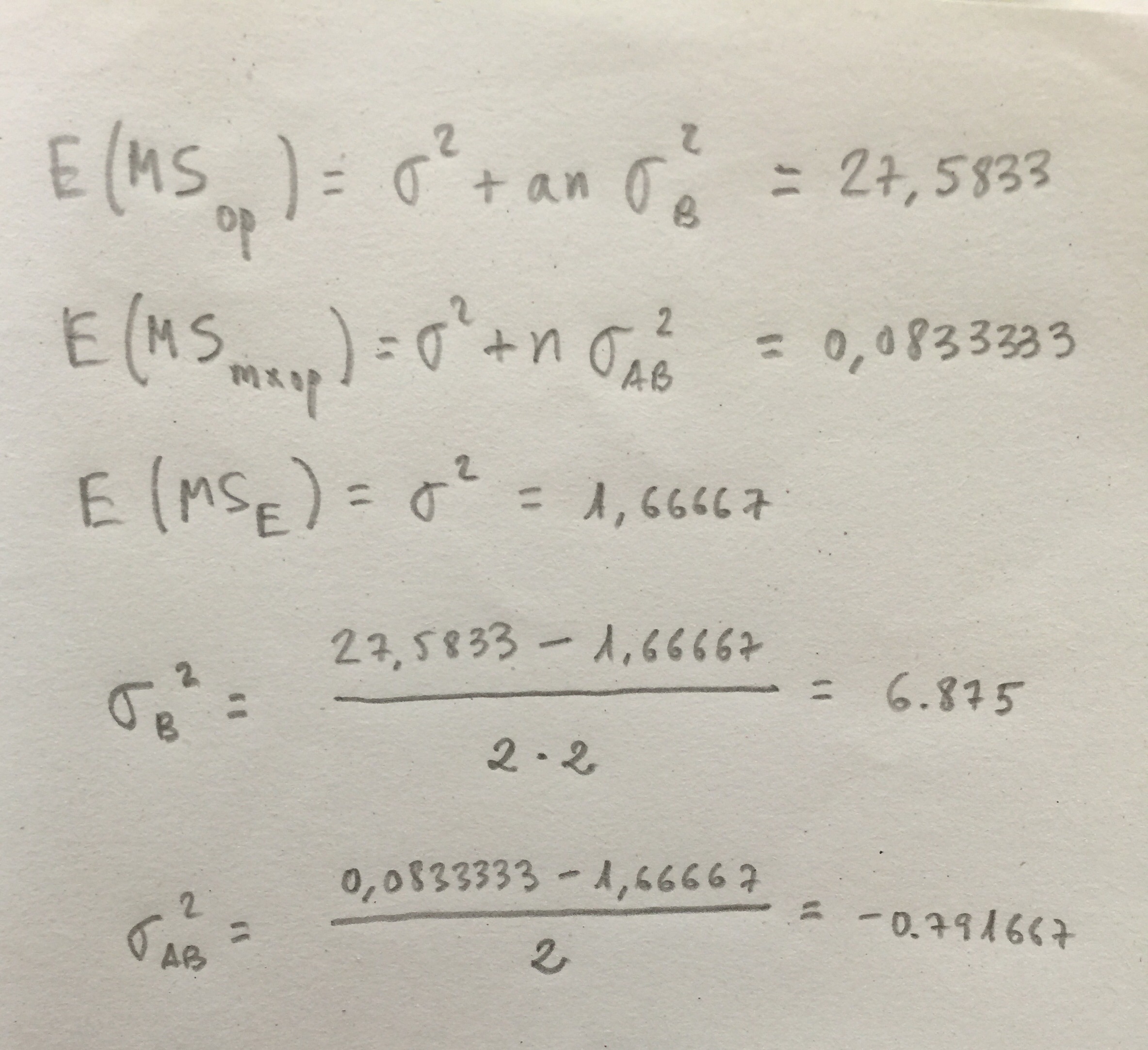El cálculo de las componentes de la varianza se realizan así: