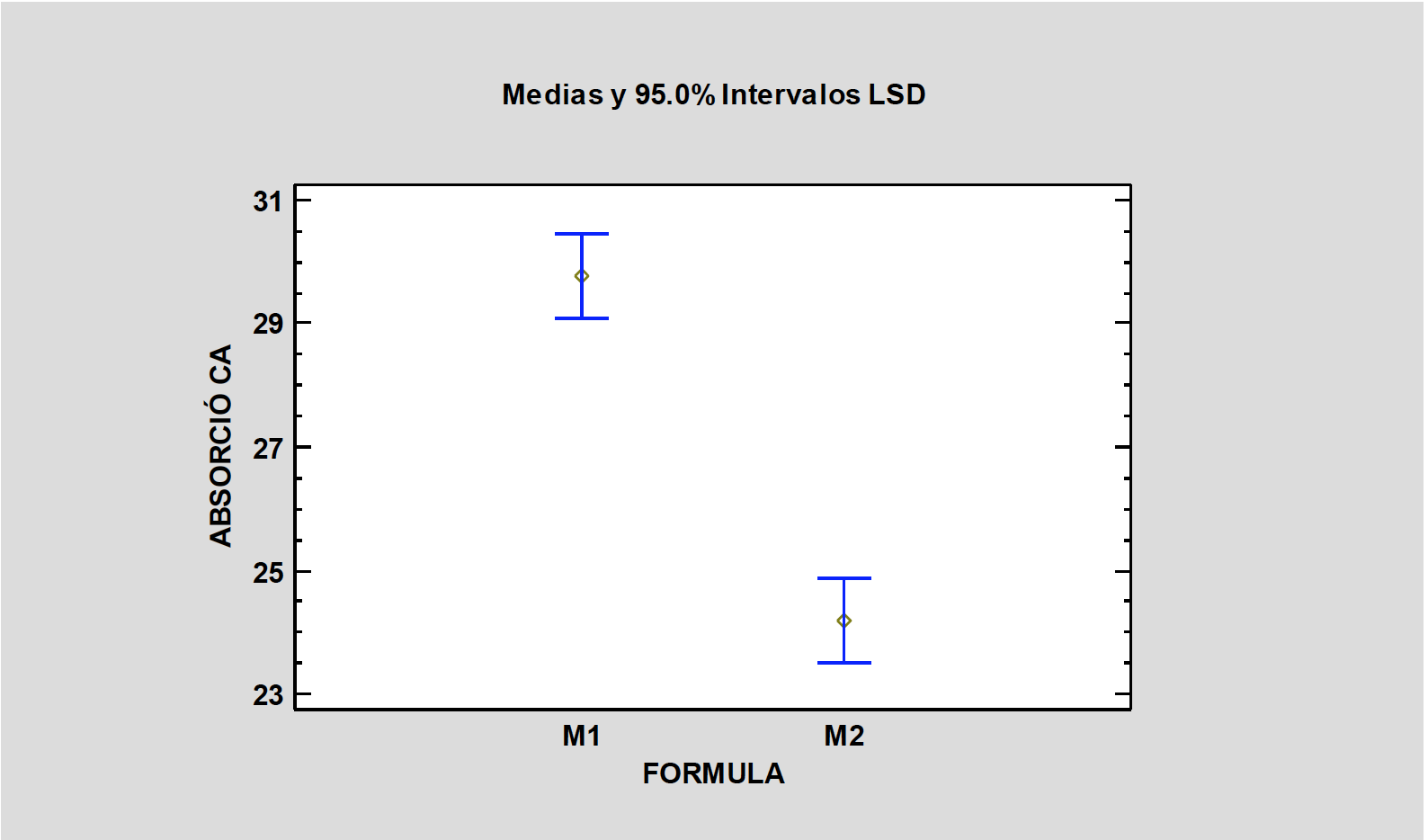 Los gráficos de medias de los diferentes niveles de los dos factores, con sus respectivos intervalos de confianza, muestran, gráficamente, de forma clara, cuáles son esos perfiles: