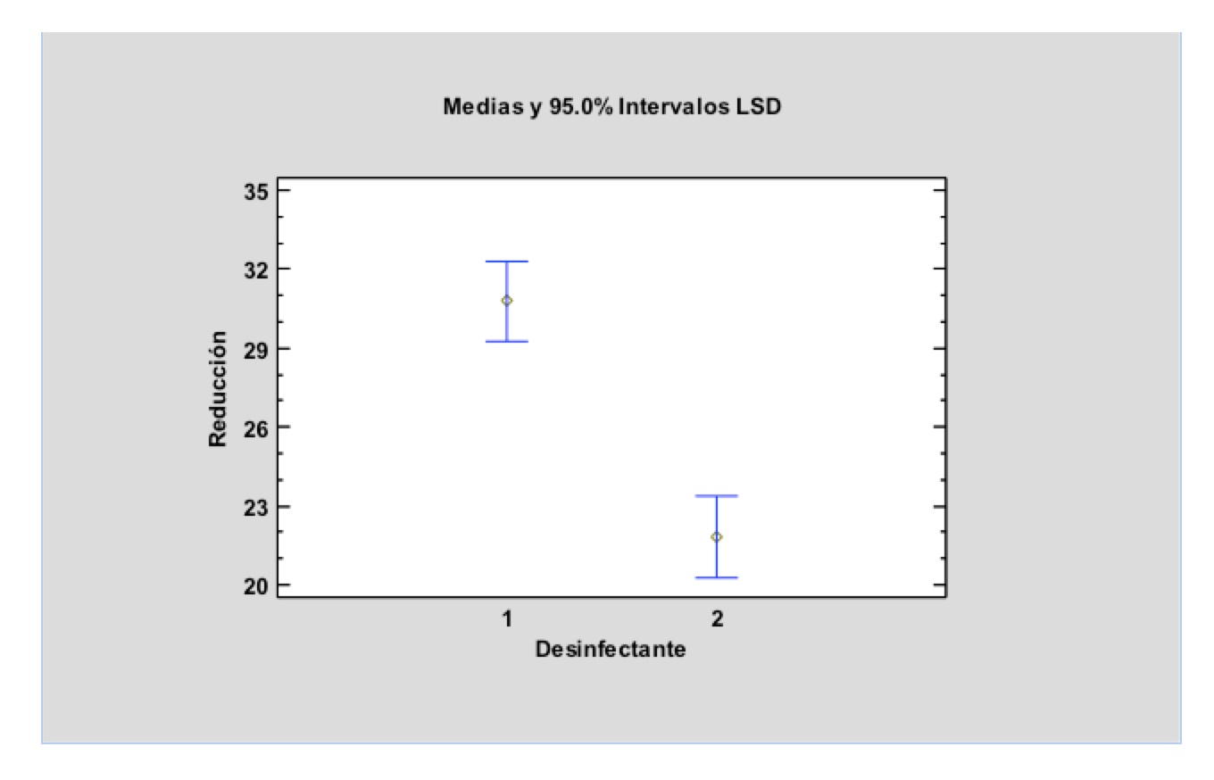 El Desinfectante 1 se ajusta a una distribución normal N(26.3+4.47, Raíz(12.97+4.22))=N(30.77, 4.146). Esto es cierto precisamente por lo que acabamos de demostrar.