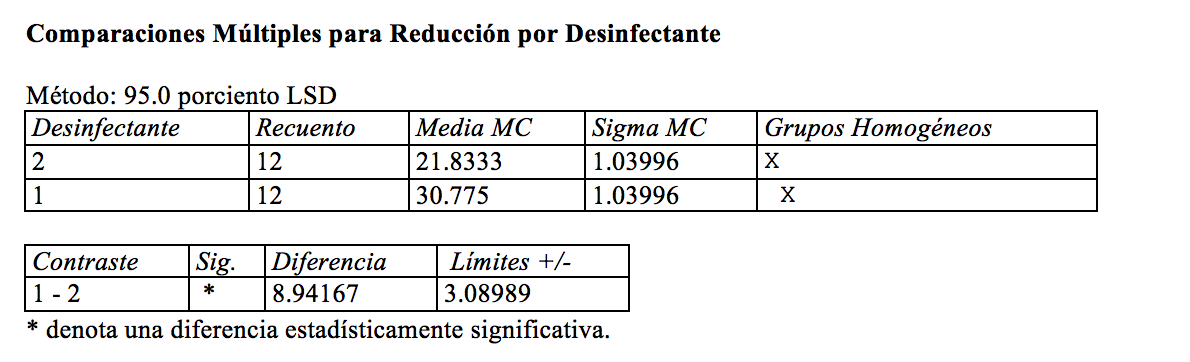 Las comparaciones múltiples nos dan las siguientes diferencias dos a dos: