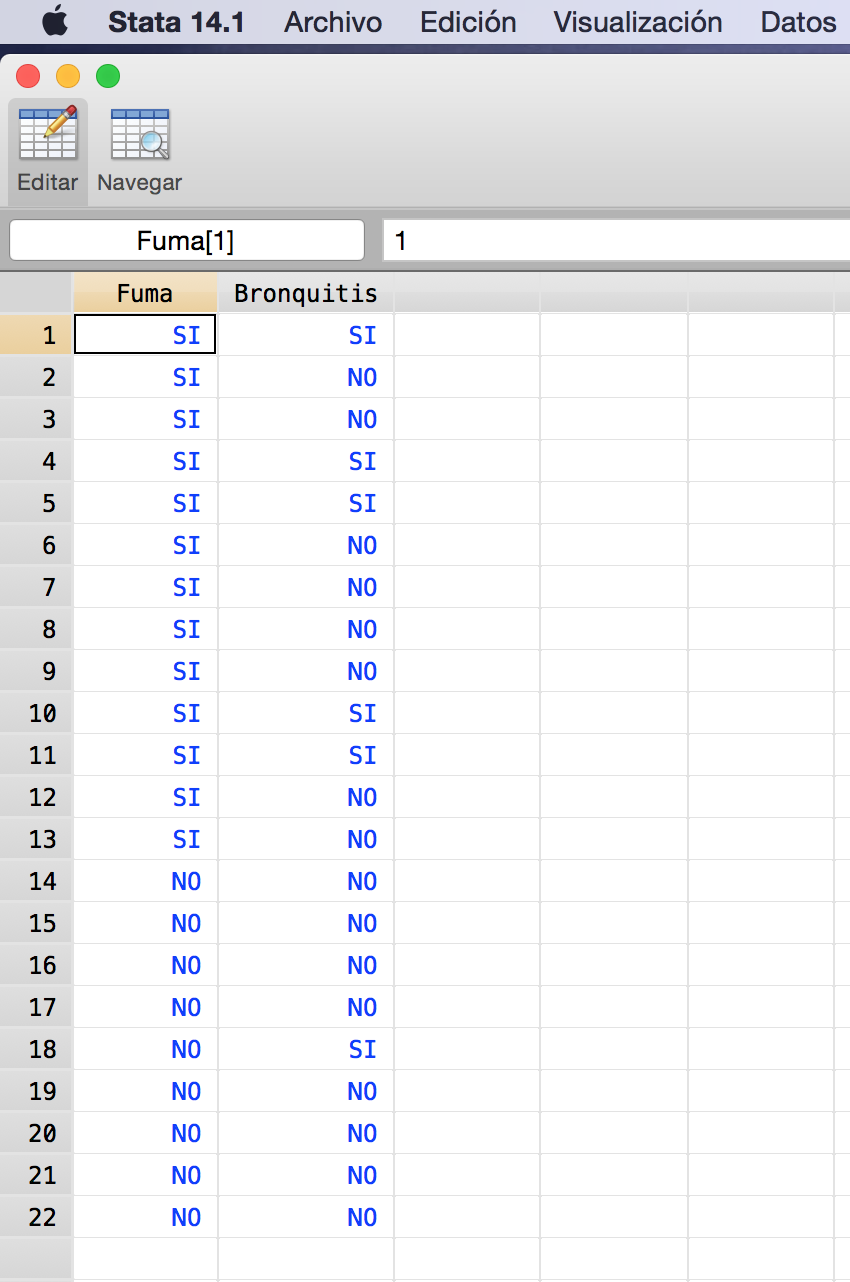 Doncs suposem que prenem una mostra real. A persones adultes els demanem si són fumadors i si tenen Bronquitis crònica. Podríem obtenir les següents dades: