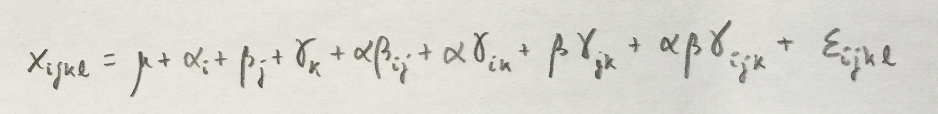 4.Tenemos tres factores fijos y cruzados. El modelo es: