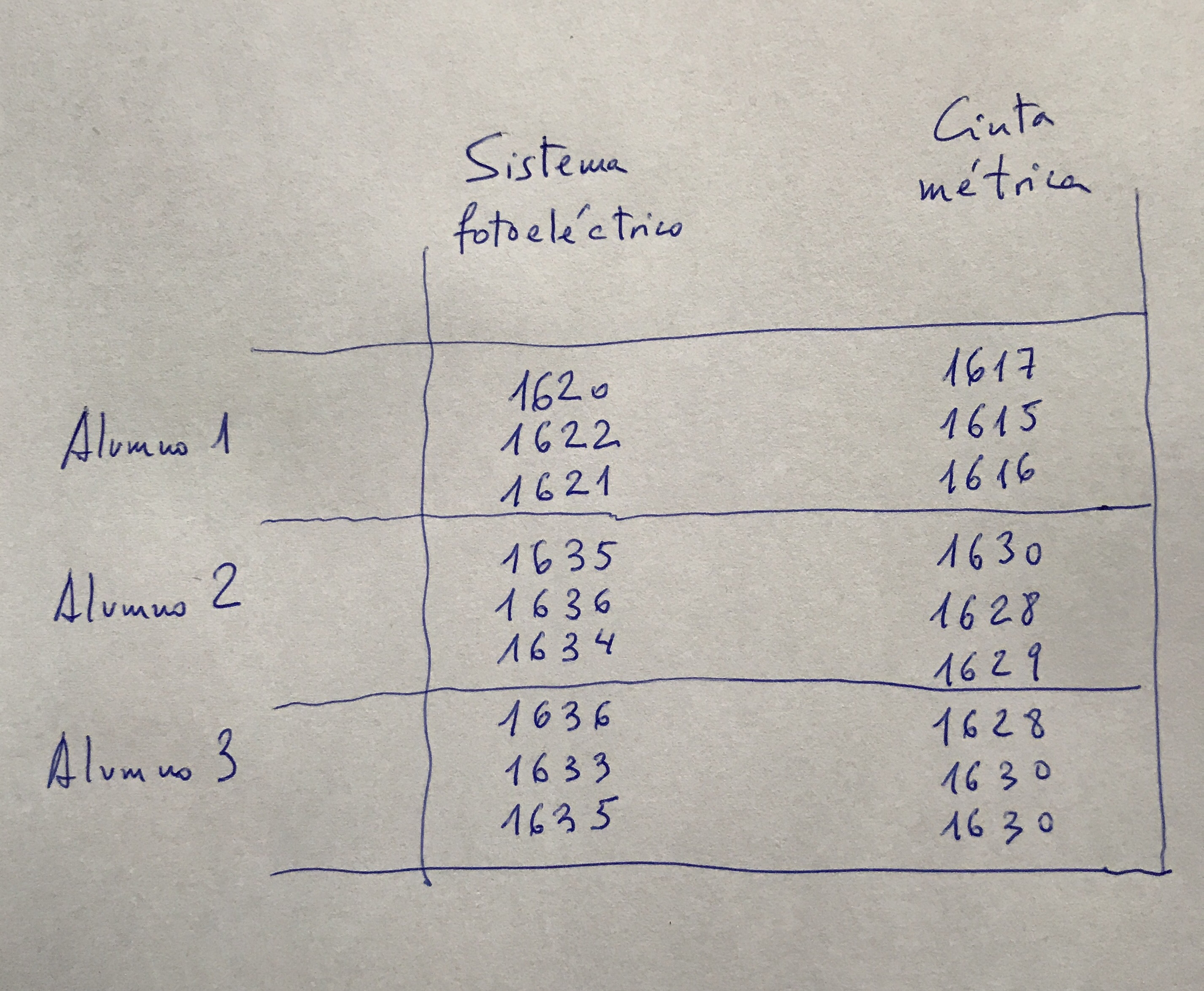 20.Tenemos los siguientes datos en un estudio donde se aplican dos sistemas de medir la altura (Sistema fotoeléctrico y Cinta métrica). Tres alumnos repiten tres veces la medida de la altura de una misma persona, en milímetros, en cada uno de los dos sistemas de medir. ¿Cuál es la afirmación más razonable respecto a los resultados que podríamos obtener en el ANOVA?: