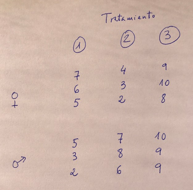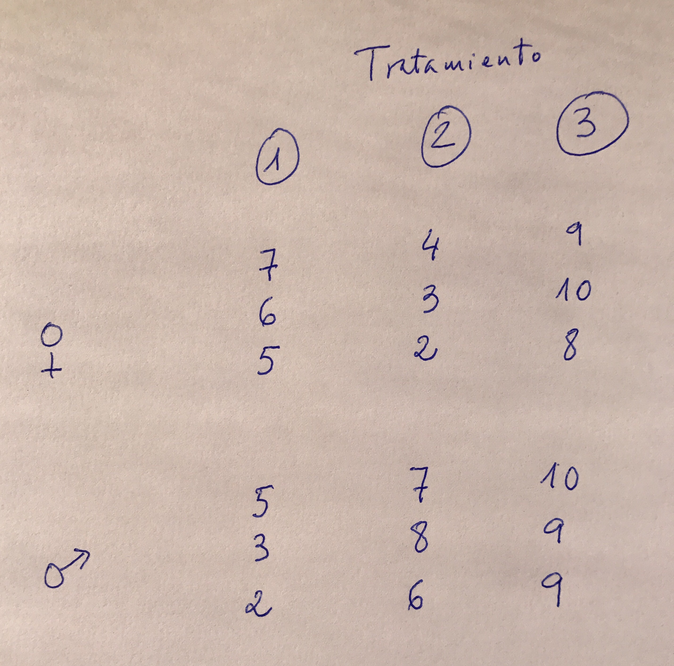 b.Factor Tratramiento: p>0.05. Factor Sexo: p>0.05. Interacción: p<0.05.