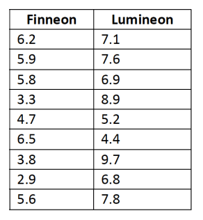 4. Se quiere comparar las velocidades que pueden alcanzar los Finneon y su evolución Lumineon. Para ello se han usado 9 Finneon de entrenadores y 9 Lumineon de otros entrenadores, todos ellos voluntarios. Mediante una serie de pruebas de natación se evalúan las velocidades de cada uno de estos Pokemon. Las velocidades se miden en metros/segundos y los valores obtenidos son los siguientes: