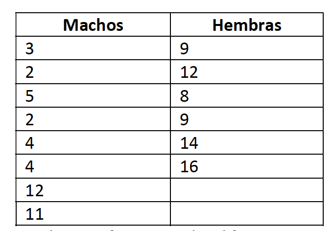 6.Hemos tomado 14 Spheals de entrenadores y entrenadoras al azar del club náutico de Alola (8 machos y 6 hembras) y hemos visto cuantas volteretas pueden dar seguidas. Los resultados obtenidos son los siguientes:
