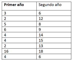 7. Se ha realizado un estudio sobre la producción de toxinas creadas por Mareanie en diversos puntos de las costas de la ruta 13 en Teselia, y al cabo de 4 años se ha repetido el mismo estudio en las mismas zonas. Se trataba de ver si la producción de toxinas había disminuido o serían estables. Los resultados fueron los siguientes: