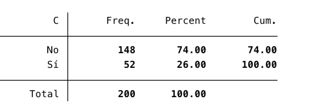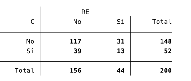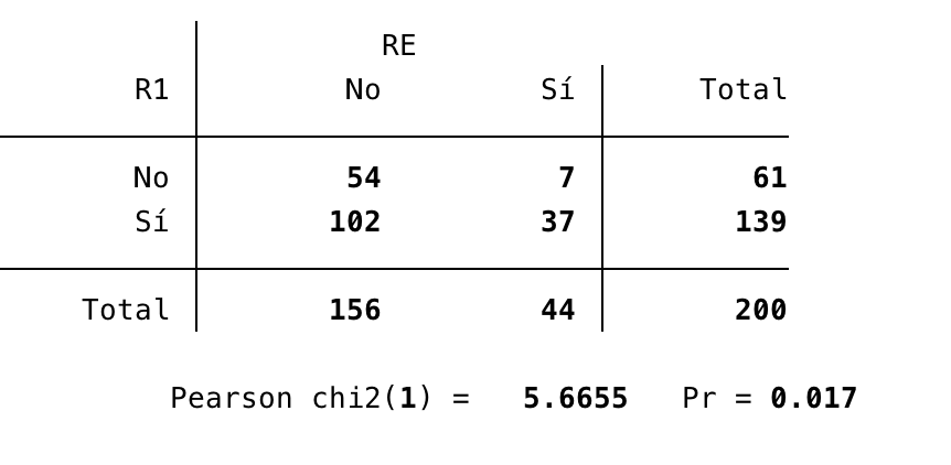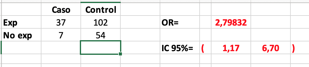 No hay asociación con cada variable individualmente, sin embargo, a la que creamos una variable en la que separamos los que tienen alguna afectación respecto a los que no tienen ninguna sí obtenemos relación. Se trata de un factor de riesgo con una OR de 2.8 prácticamente.
