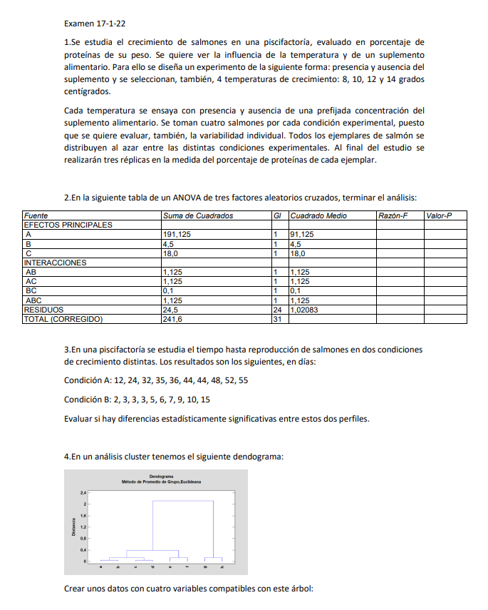 Situación 183: Examen (ANOVA, Análisis de supervivencia y Análisis clúster)