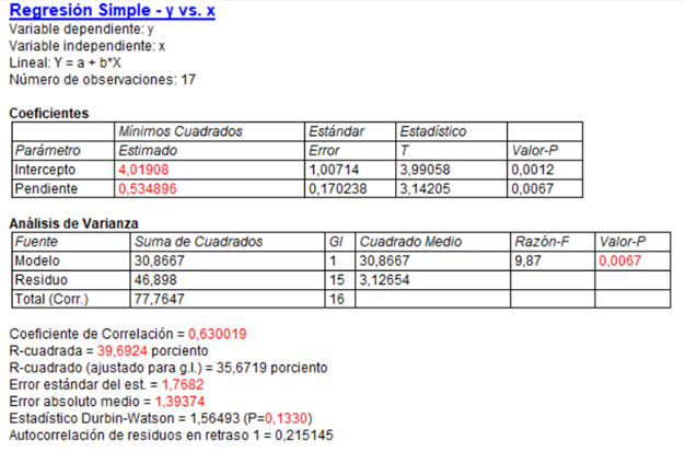 4.En una regresión lineal simple tenemos los siguientes resultados: