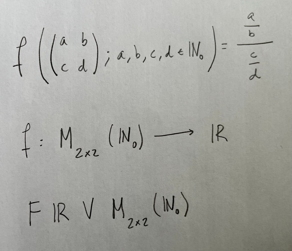 Función matemática 22: La Odds ratio como función matemática. Espacios de funciones Deja un comentario Comparte esto: Compartir en X (Se abre en una ventana nueva) X Comparte en Facebook (Se abre en una ventana nueva) Facebook Me gusta Cargando...