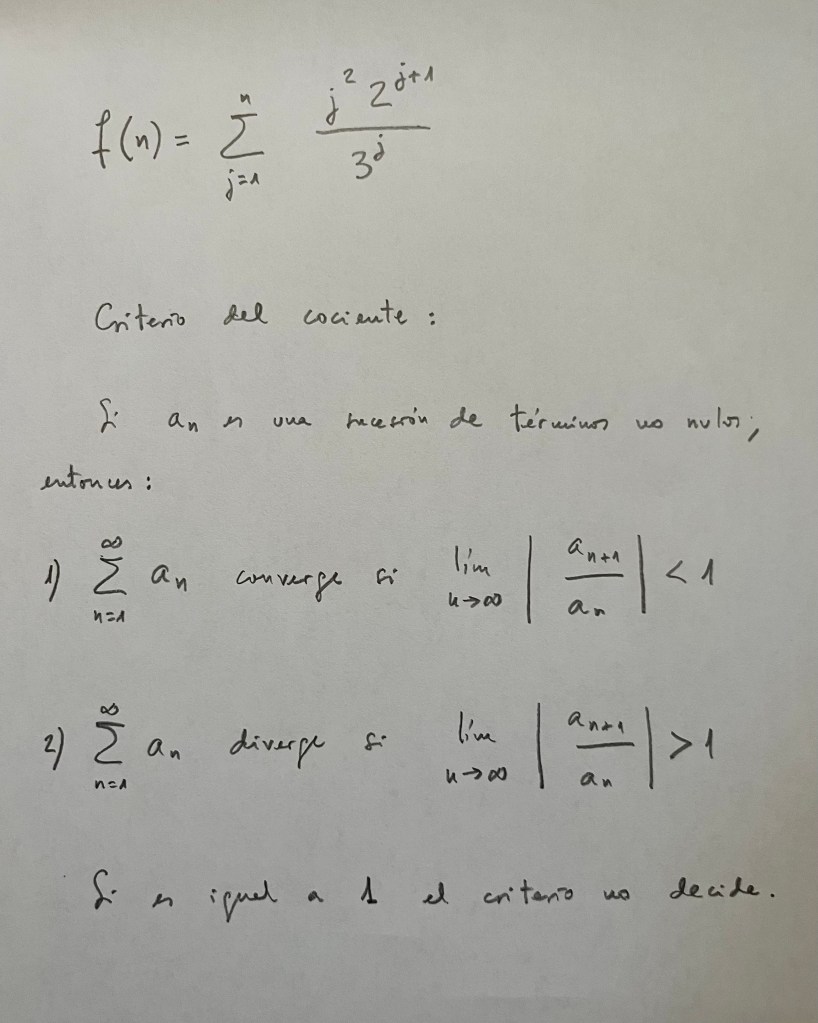 Función matemática 34: Criterio del cociente Deja un comentario Comparte esto: Compartir en X (Se abre en una ventana nueva) X Comparte en Facebook (Se abre en una ventana nueva) Facebook Me gusta Cargando...