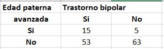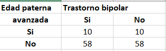 6.No tener Edad paterna avanzada es un factor de protección para el Trastorno bipolar con una OR de 0,44.