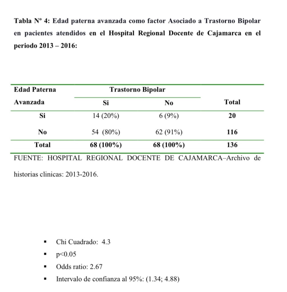 5.La Edad paterna avanzada es un factor de riesgo para el Trastorno bipolar con una OR de 2,67.