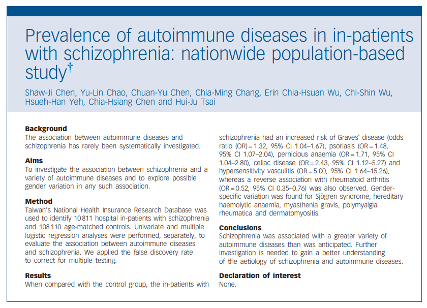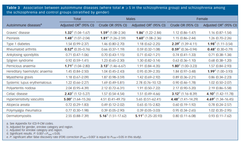 Lo que pretenden los autores es buscar asociaciones entre diferentes enfermedades autoinmunes y la esquizofrenia. Presentan los siguientes resultados en Odds ratio: