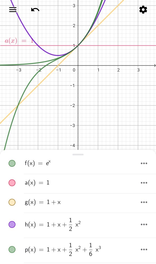 Función matemática 20 (Anexo 1) Deja un comentario SOLUCIÓN: En la siguiente imagen de Geogebra se observa esta función f(x) y las sucesivas aproximaciones con polinomios de grado cero, uno, dos y tres: Comparte esto: Compartir en X (Se abre en una ventana nueva) X Comparte en Facebook (Se abre en una ventana nueva) Facebook Me gusta Cargando...