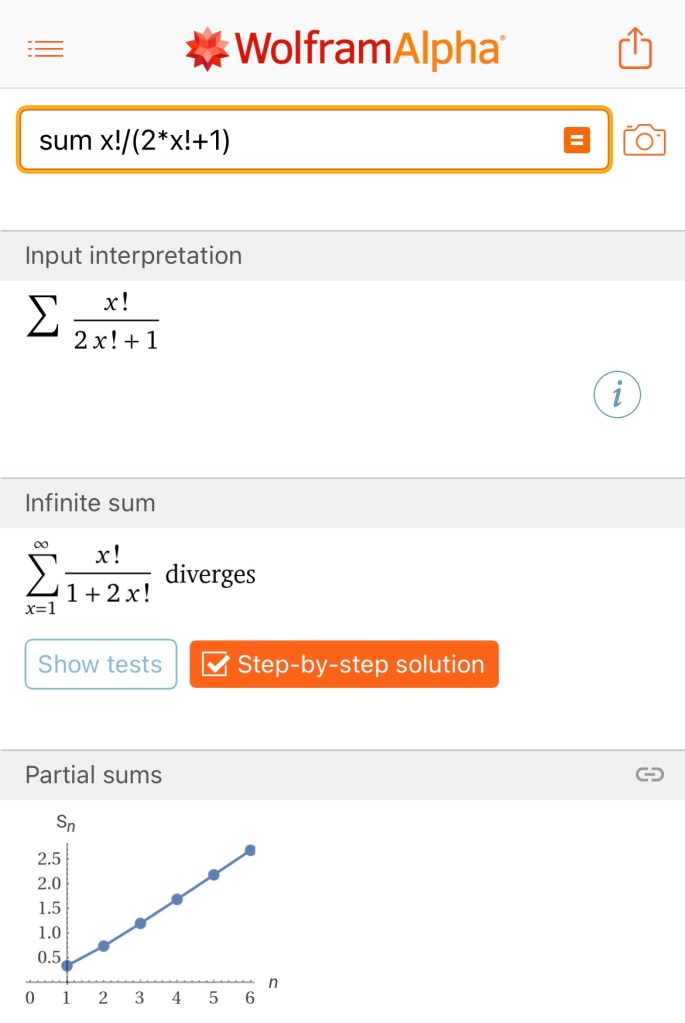 Función matemática 25 (Anexo 1) Deja un comentario Uso del Wolfram Alpha para series: Comparte esto: Compartir en X (Se abre en una ventana nueva) X Comparte en Facebook (Se abre en una ventana nueva) Facebook Me gusta Cargando...