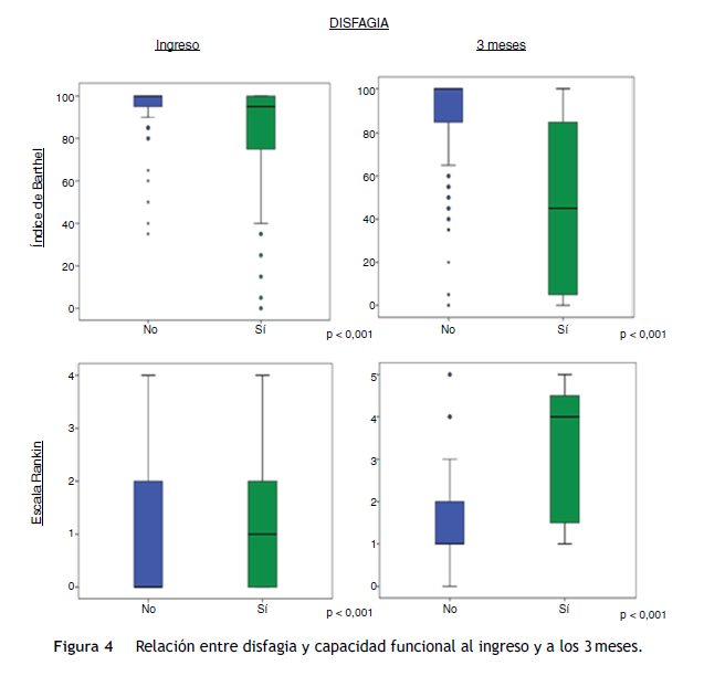 a)¿Qué porcentaje de pacientes que tienen disfagia en el ingreso tienen un valor de Rankin por debajo de 2?