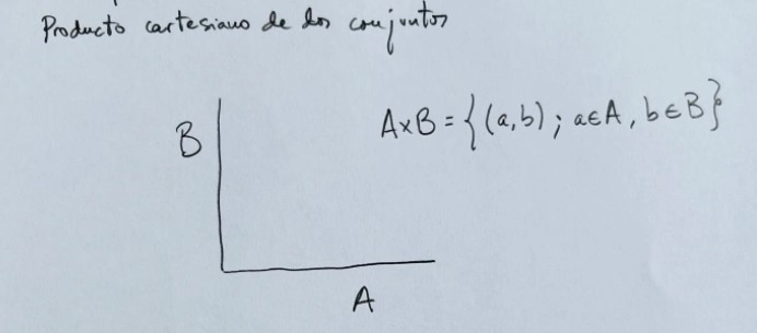 El producto cartesiano de dos conjuntos es un conjunto formado por todas las parejas posibles de elementos de los dos conjuntos, respetando el orden: el primer elemento es del primer conjunto y el segundo elemento lo es del segundo conjunto.