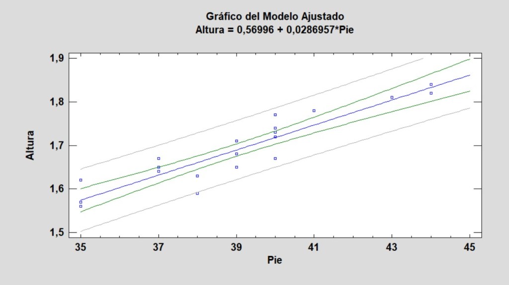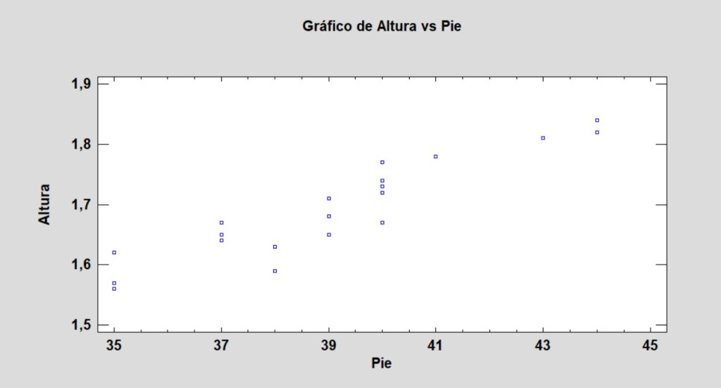 Miremos el cálculo de la correlación entre la variable Pie y la variable Altura en nuestra base de datos: