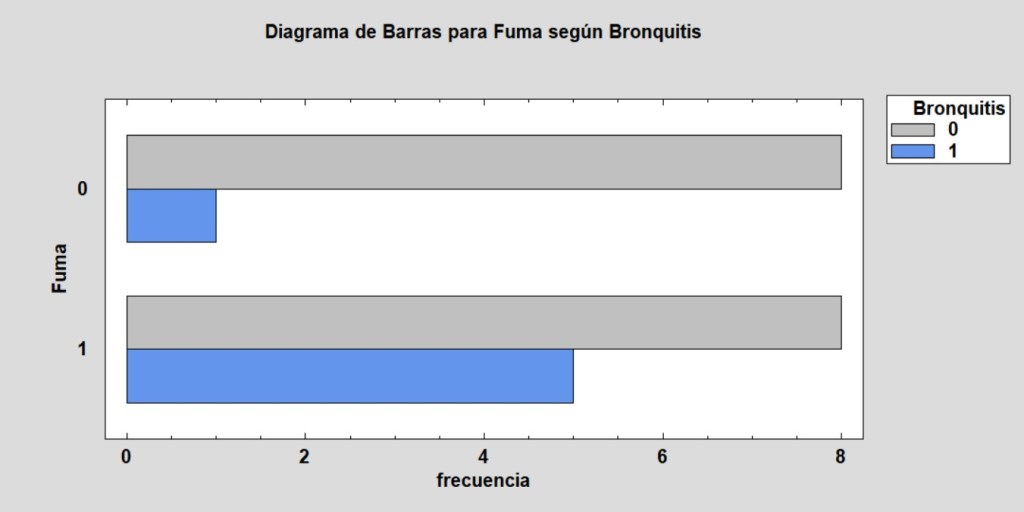 Puede apreciarse perfectamente que fumar está asociado con la bronquitis.