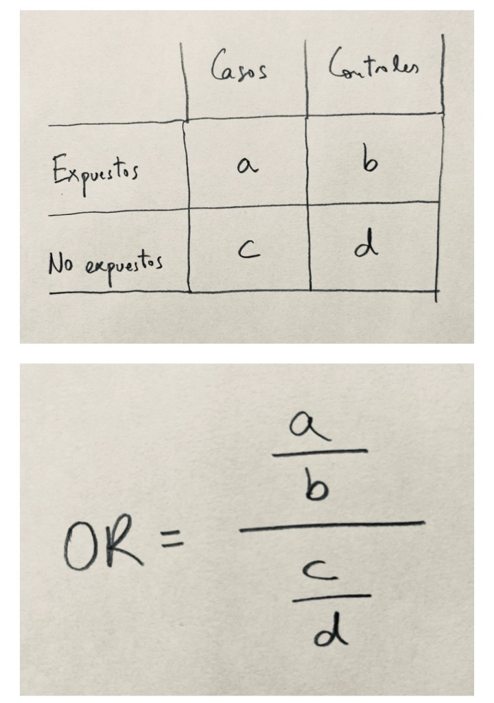Otro número muy importante en Estadística es la Odds ratio. Mide la relación que hay entre dos variables cualitativas dicotómicas.